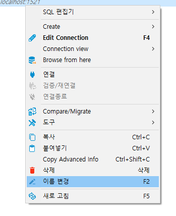 완료 버튼을 누르면 Database Navigator 에 접속정보가 저장되는데요,