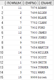 위를 보시면 ROWNUM 의 순서가 뒤죽박죽 인것을 볼 수 있습니다.