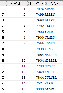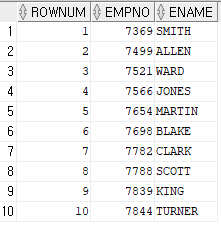 사용할 수 있는 형태의 결과를 보시면 ROWNUM 이라는 컬럼이 생성되면서
