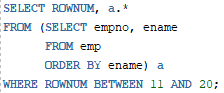 보시면 11~20 페이지를 조회하고자 BETWEEN 11 AND 20 이라고 표현했죠?